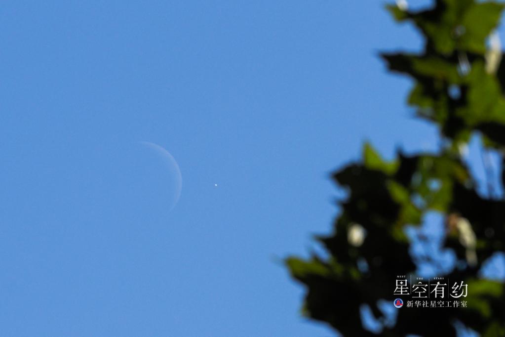 北京市天文愛(ài)好者王俊峰2021年11月8日中午在北京拍攝的金星合月。(本人供圖)