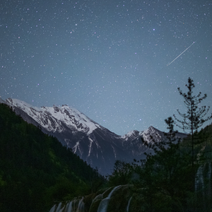 這是重慶市天文攝影愛(ài)好者戴建峰2022年5月5日在四川九寨溝拍攝的寶瓶座η流星雨。(本人供圖)