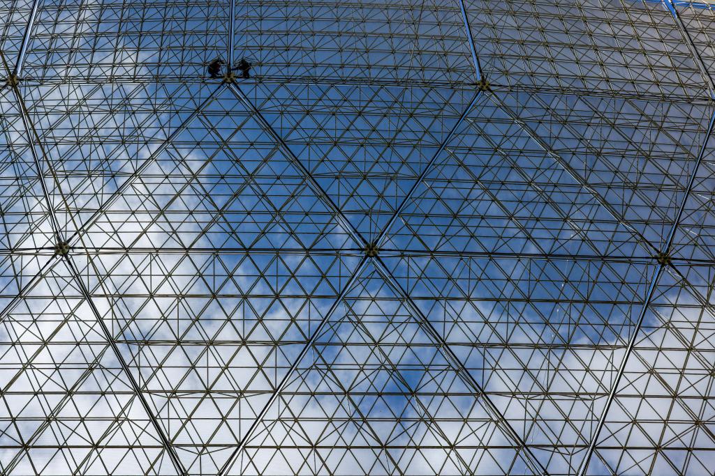 2022年7月22日,工作人員對“中國天眼”的反射面板進(jìn)行維護保養(維護保養期間拍攝)。新華社記者 歐東衢 攝