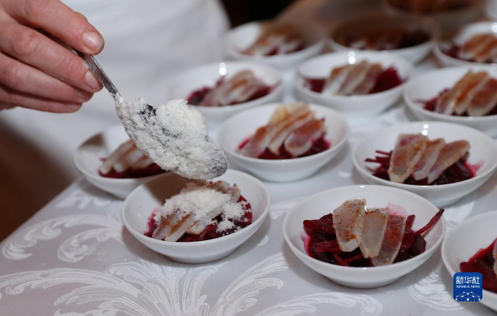 這是11月29日在位于巴黎的法國外交部舉行的LA LISTE國際美食榜單揭曉活動(dòng)現場(chǎng)拍攝的法國美食。