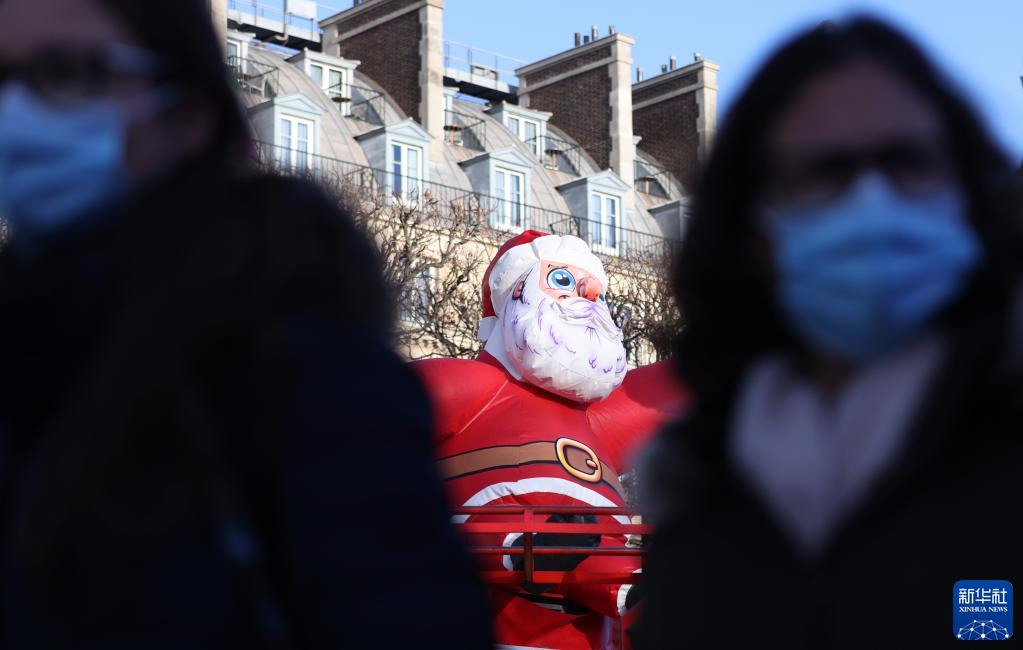12月9日,人們戴口罩參觀(guān)法國巴黎一處圣誕市場(chǎng)。