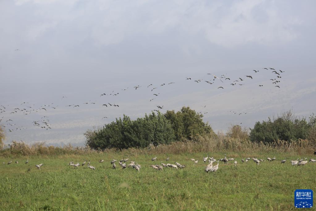 12月9日,一群灰鶴在以色列阿格蒙胡拉鳥(niǎo)類(lèi)和自然公園的濕地里休息。