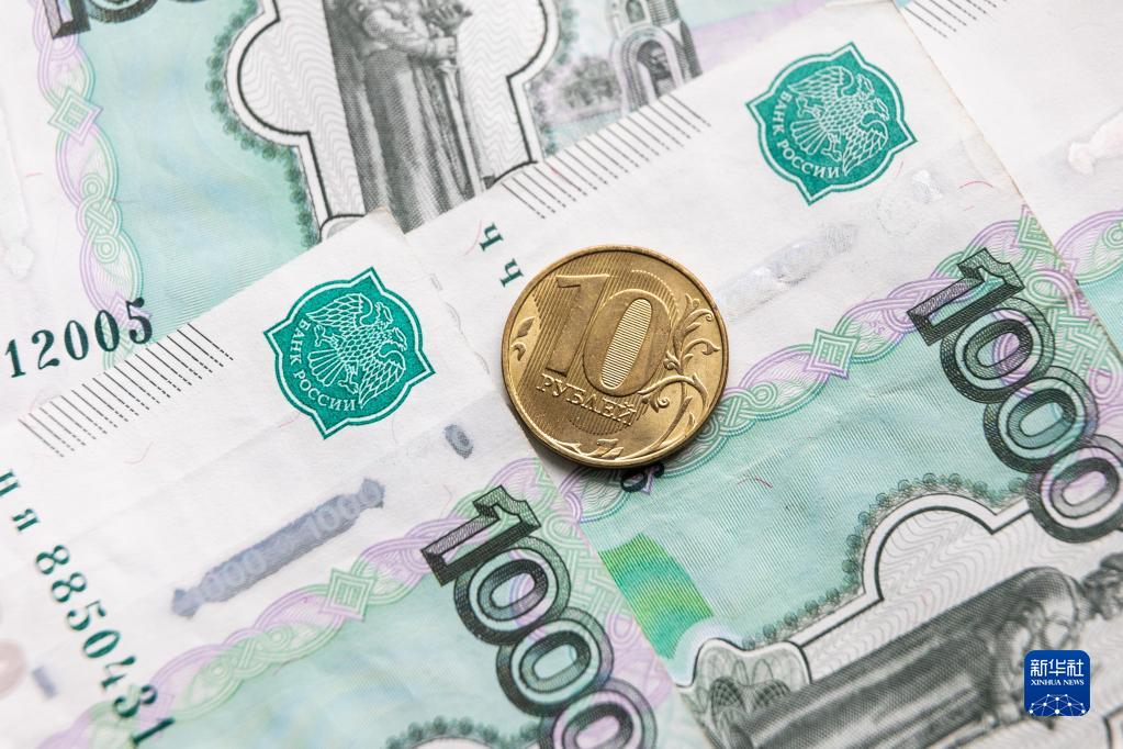 這是4月2日在俄羅斯首都莫斯科拍攝的盧布紙幣和硬幣。新華社記者 白雪騏 攝