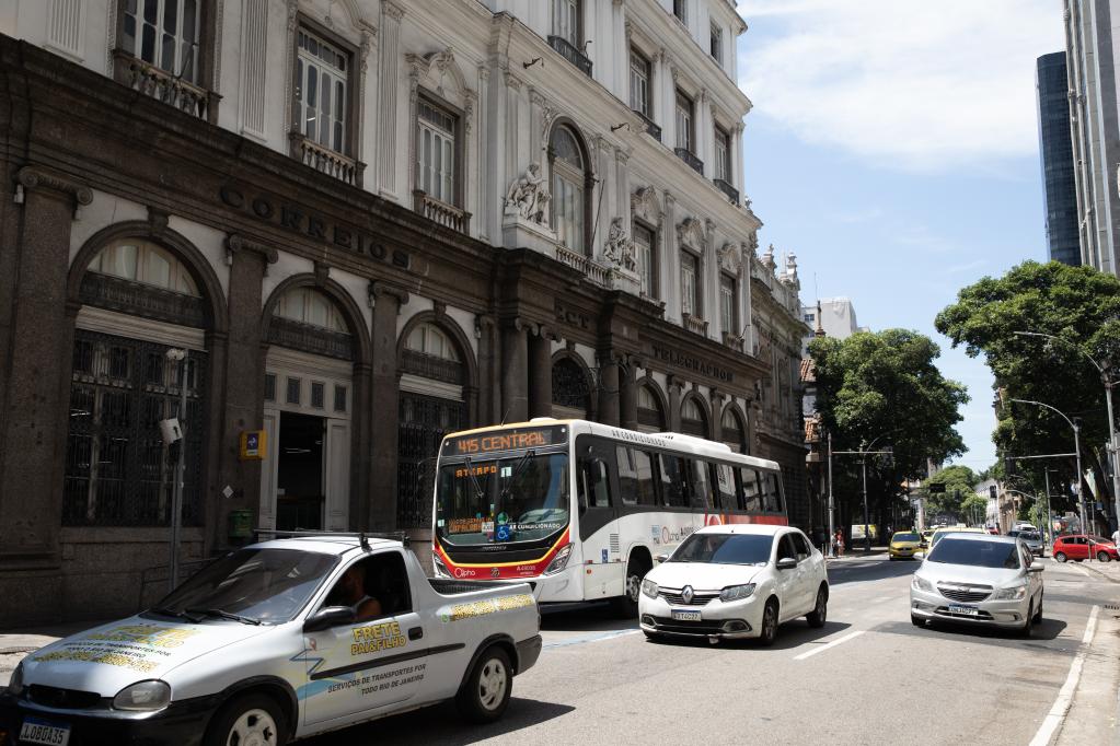 3月4日,在巴西里約熱內盧,車(chē)輛經(jīng)過(guò)一所郵局。(新華社記者 王天聰 攝)