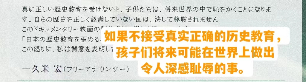 這部紀錄片由跟蹤報道日本教育多年的資深記者齊加尚代執導,聚焦日本政界如何通過(guò)篡改教科書(shū)歪曲歷史,又如何施壓學(xué)校和教師。片中多個(gè)真實(shí)事例令人深感震驚和憤怒。