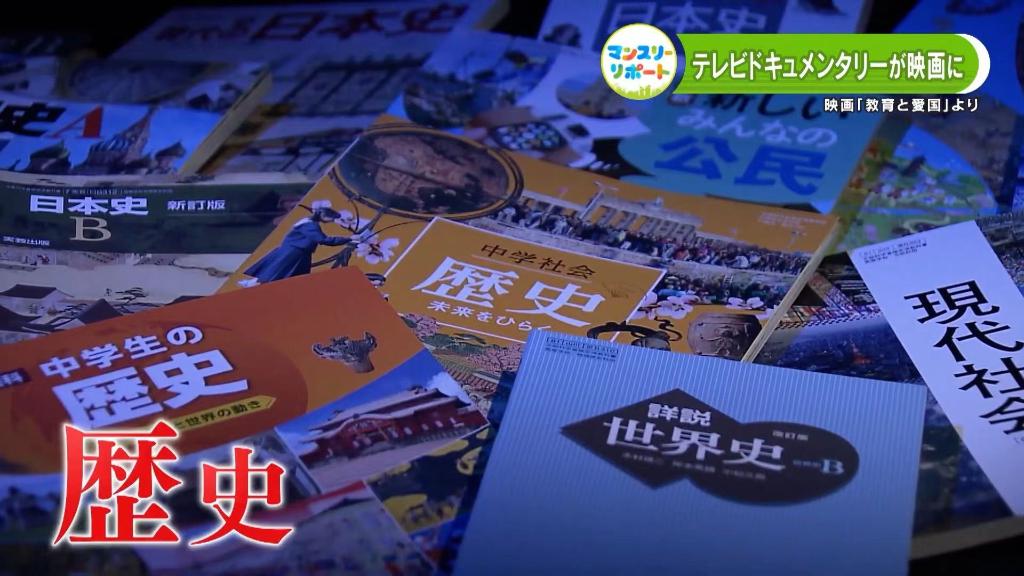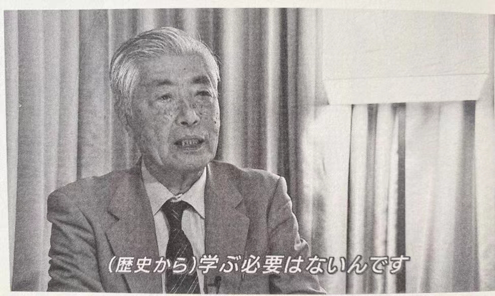 紀錄片《教育與愛(ài)國》的相關(guān)書(shū)籍中展示伊藤隆稱(chēng)“歷史沒(méi)必要學(xué)”的畫(huà)面。
