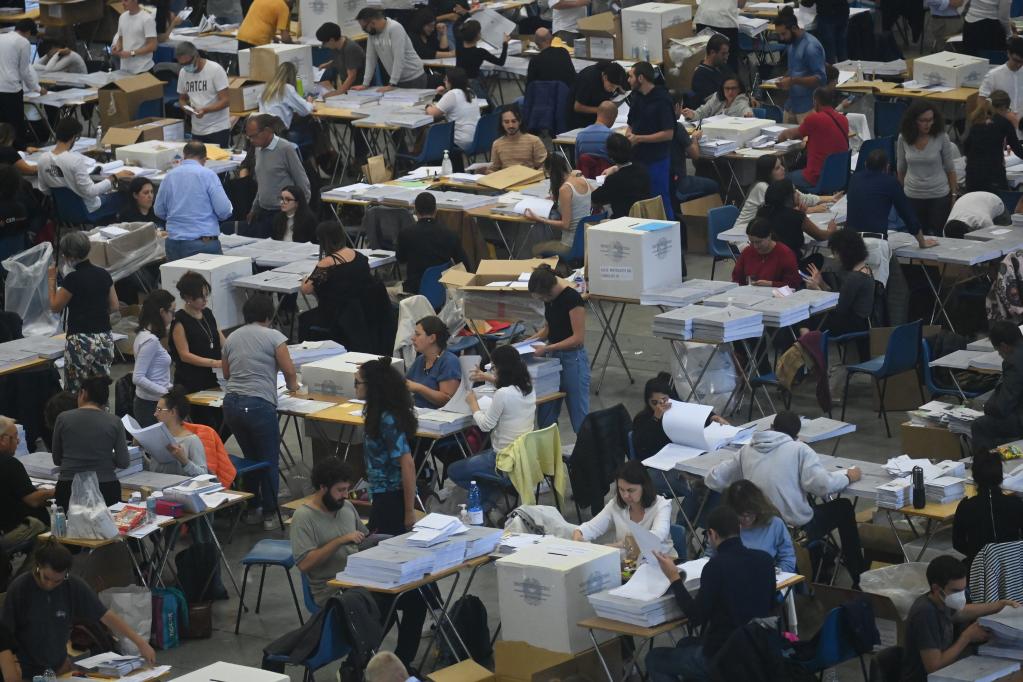 9月25日,在意大利博洛尼亞,工作人員對居住在國外的意大利公民的選票進(jìn)行統計。新華社發(fā)(賈尼·斯基基攝)