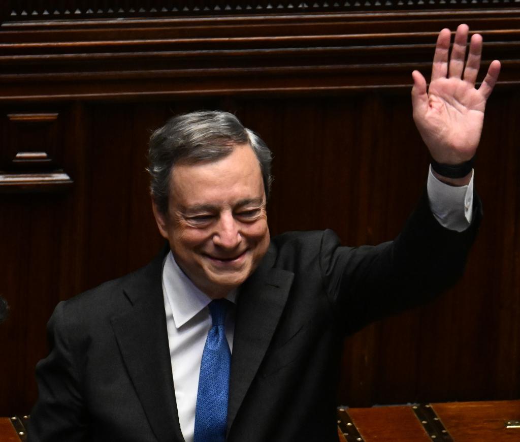 7月21日,在意大利羅馬,意大利總理馬里奧·德拉吉在眾議院發(fā)表講話(huà)后揮手致意。新華社發(fā)(阿爾貝托 攝)