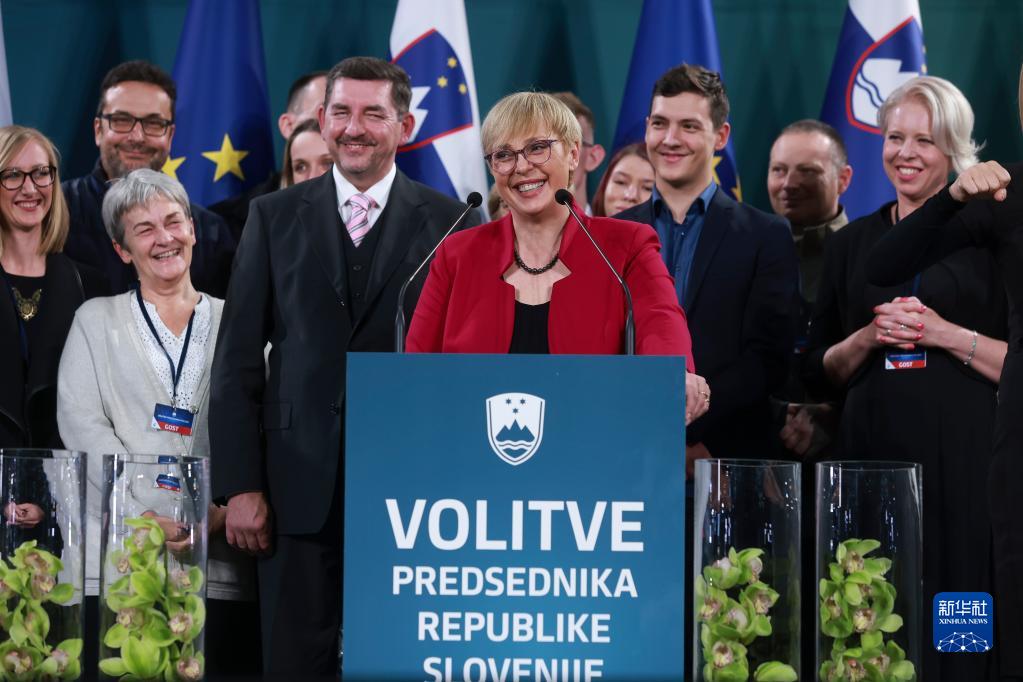 11月13日,在斯洛文尼亞盧布爾雅那,當選總統娜塔莎·皮爾茨·穆薩爾在選舉總部向媒體發(fā)表講話(huà)。新華社發(fā)(澤利科·斯特凡尼奇 攝)