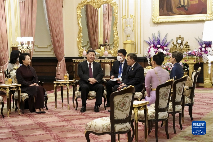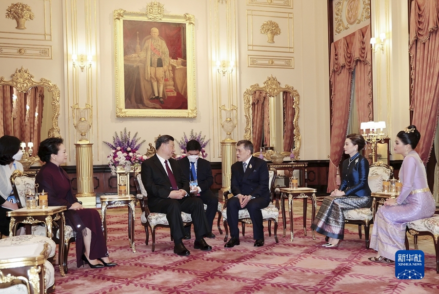 當地時(shí)間11月18日晚,國家主席習近平和夫人彭麗媛在曼谷大王宮會(huì )見(jiàn)泰國國王哇集拉隆功和王后素提達。新華社發(fā)