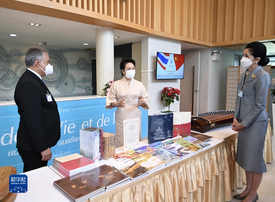 當地時(shí)間11月19日上午,國家主席習近平夫人彭麗媛在泰國總理夫人娜拉蓬陪同下參觀(guān)甘拉雅尼音樂(lè )學(xué)院。這是彭麗媛向甘拉雅尼音樂(lè )學(xué)院贈送中國古箏和中國文化音樂(lè )類(lèi)書(shū)籍及音像制品。新華社記者 謝環(huán)馳 攝