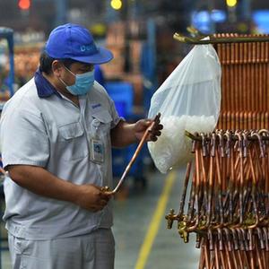 11月8日,在位于泰國羅勇府的泰中羅勇工業(yè)園,工人在盾安金屬(泰國)有限公司生產(chǎn)線(xiàn)上工作。新華社發(fā)(拉亨攝)