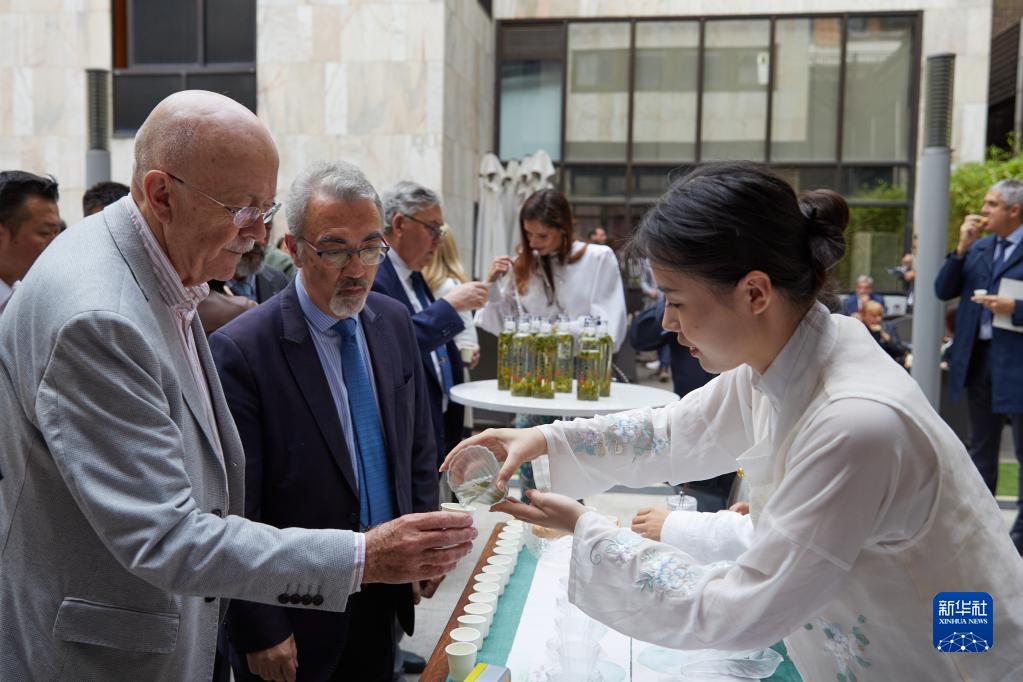 6月8日,在西班牙馬德里中國文化中心,觀(guān)眾在“茶和天下·雅集”活動(dòng)上品茶。