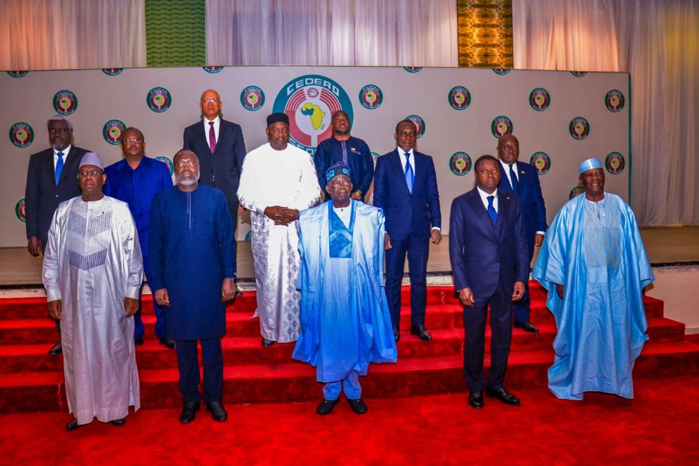 2023年7月30日,在尼日利亞首都阿布賈,參加西非國家經(jīng)濟共同體(西共體)緊急會(huì )議的西非國家領(lǐng)導人合影。新華社發(fā)(西共體供圖)