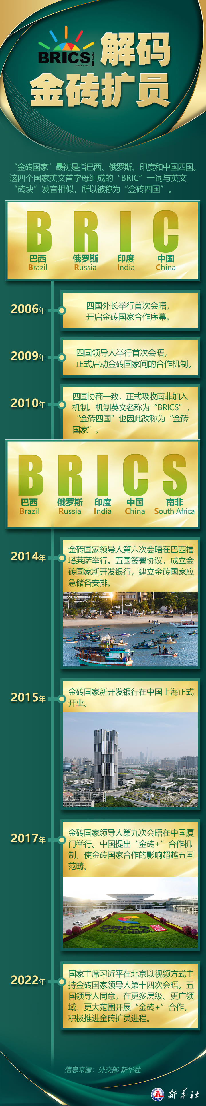 24日,金磚國家領(lǐng)導人第十五次會(huì )晤特別記者會(huì )宣布,邀請沙特、埃及、阿聯(lián)酋、阿根廷、伊朗、埃塞俄比亞正式成為金磚大家庭成員。