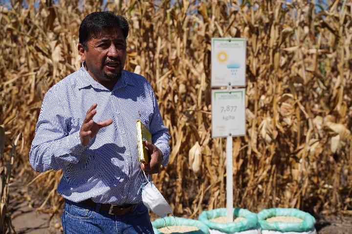 2022年11月7日,一位專(zhuān)家在墨西哥特斯科科郊外國際玉米小麥改良中心的試驗田里進(jìn)行介紹。(新華社記者朱雨博攝)