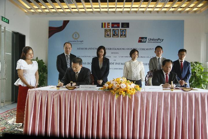 中國銀聯(lián)子公司銀聯(lián)國際與柬埔寨央行7月10日在金邊簽署合作備忘錄,約定推動(dòng)跨境二維碼業(yè)務(wù)互聯(lián)互通,雙向服務(wù)中柬兩國居民跨境移動(dòng)支付需求。(新華社發(fā),批隆攝)